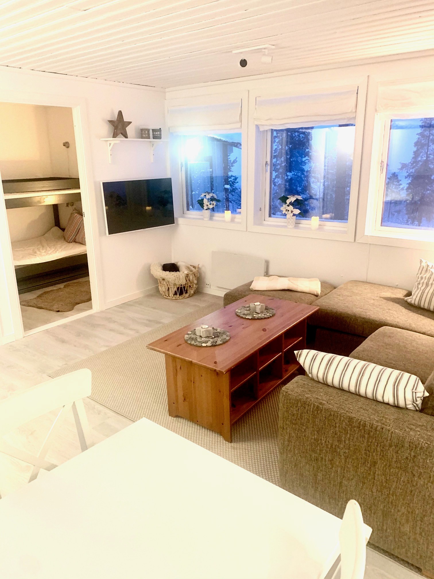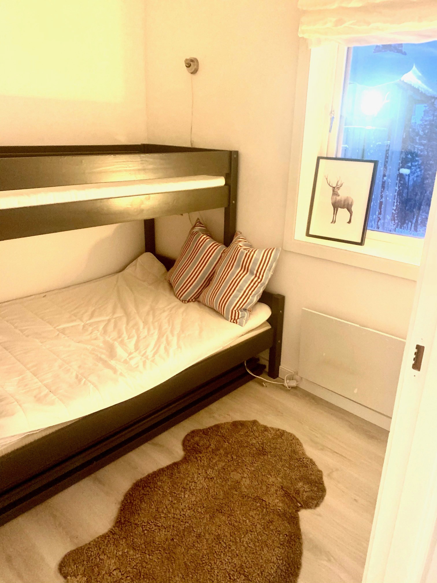 - Sovrum 1: 2 st våningssängar med 90/120 cm sängar (4 sängplatser). TV och garderob.