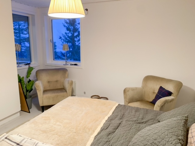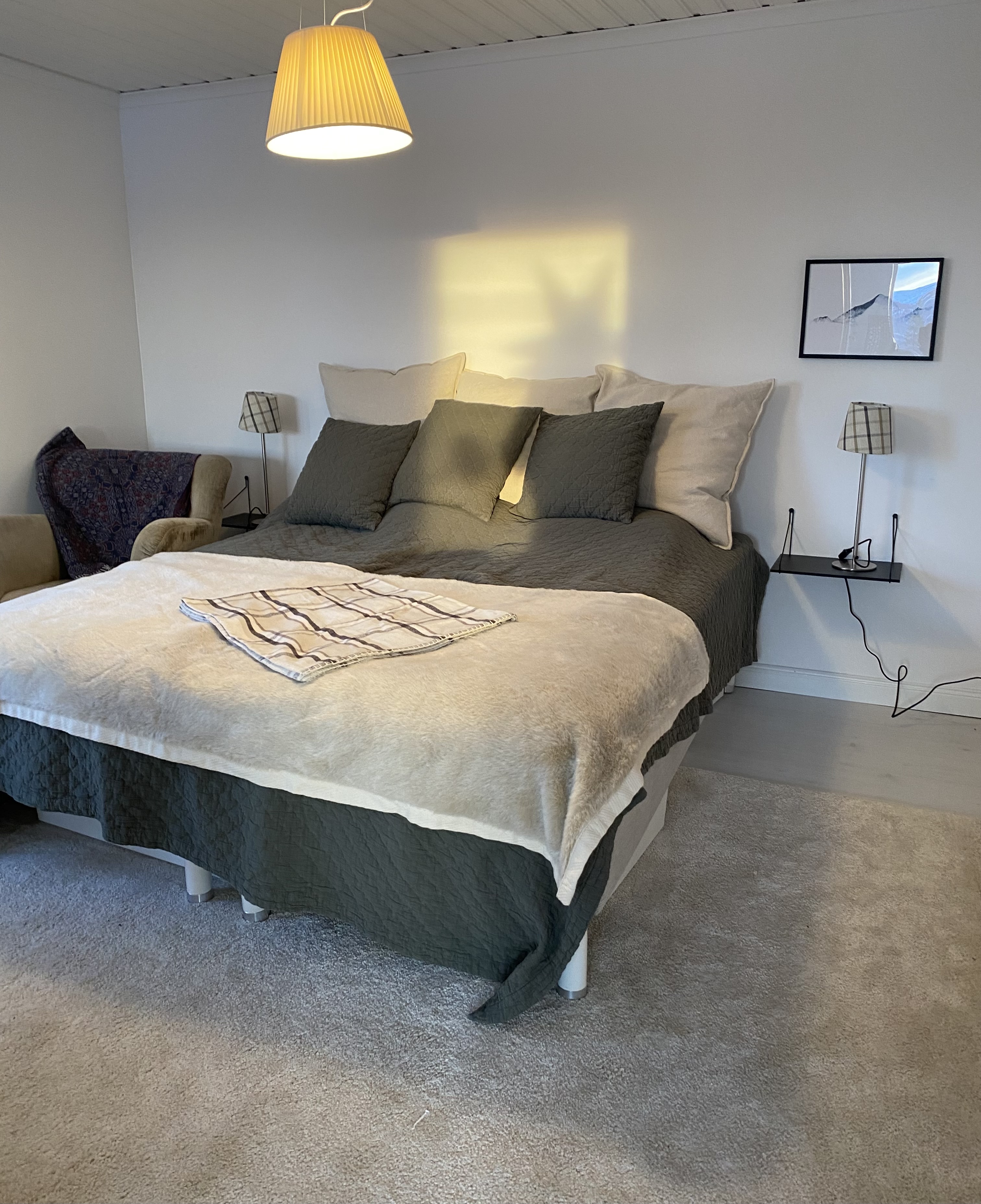 - Sovrum 3: Stor dubbelsäng med garderob samt fotölj och TV