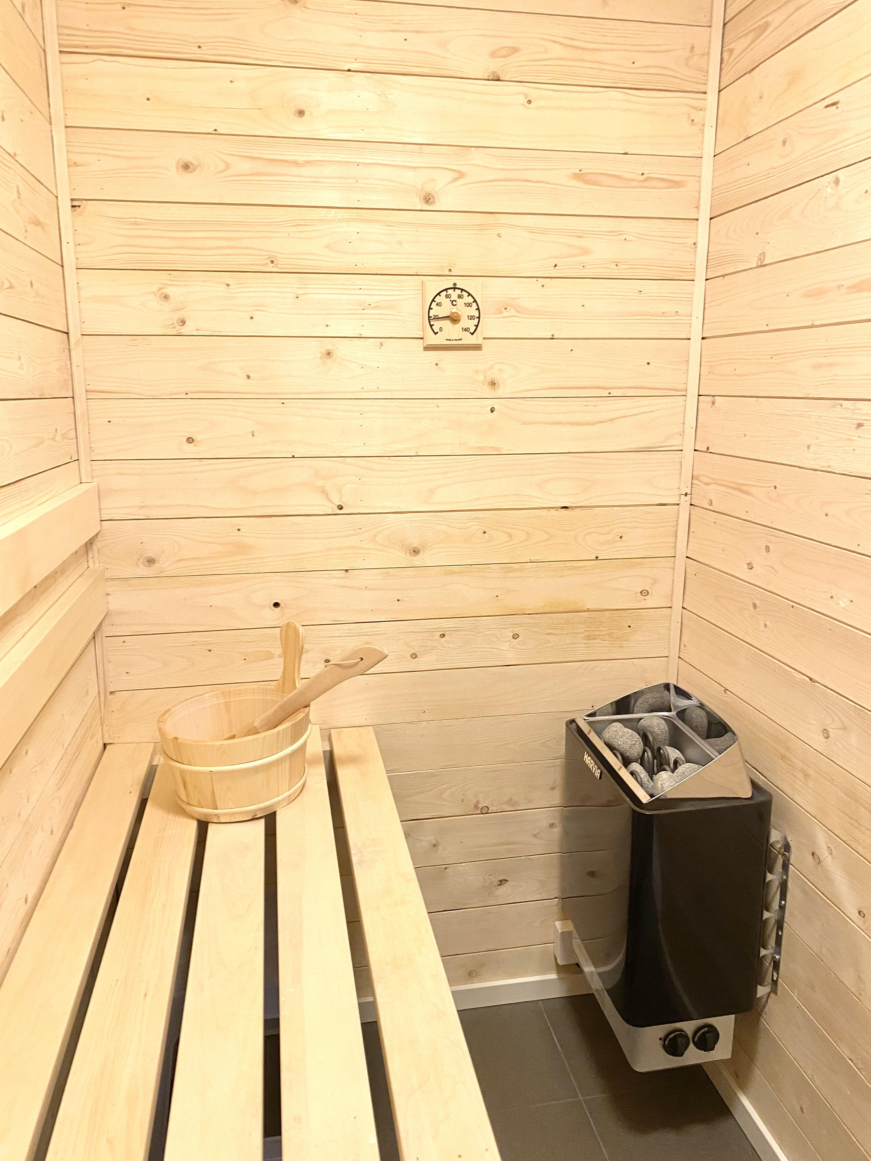 I stugan finns ett badrum med toalett, duschkabin och handdukstork. Det finns även en helt ny bastu.